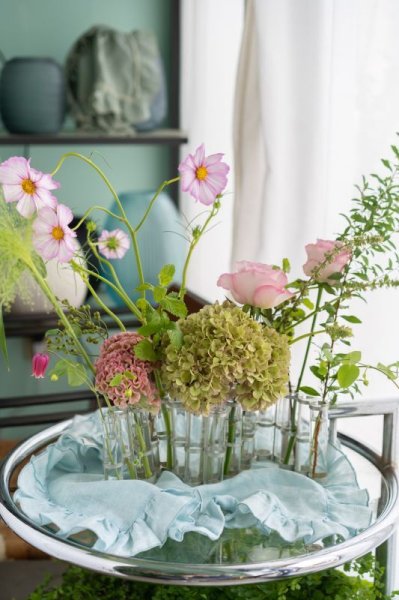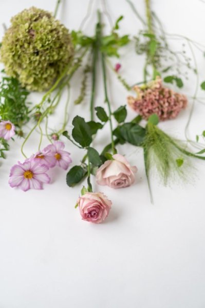 花・グリーン・実物など、旬の素材をバランスよく飾れるセットです。